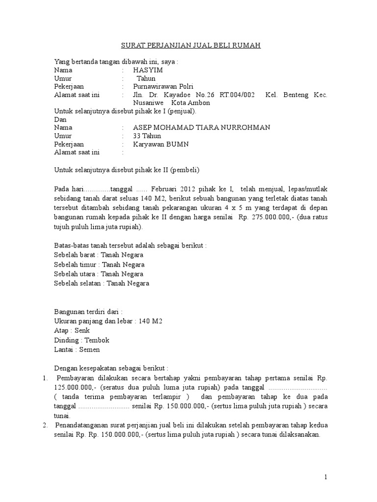 Contoh surat perjanjian juali beli rumah tanah motor mobil sepeda barang download berupa docword sederhana singkat kredit bertahap. Cikarang Griya Pratama Proses pembelian rumah dilakukan dengan berbagai tahap dimana salah satunya adalah proses pembuatan surat perjanjian jual beli rumah. CONTOH SURAT PERJANJIAN JUAL BELI RUMAH.